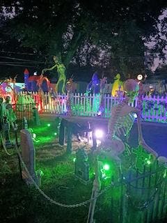 Lights By The Lateks, 7435 Ridgefield Lane, Tinley Park – We love the throwback Ed Wood-style of the Lateks’ yard haunt. All the props are homemade by Keith Latek and his three sons, including a walk-thru Halloween display and undead actors on Saturday. They’re collecting donations for Project Fire Buddies, where 100 percent collected is donated. On Oct. 15, the Lateks are having a fundraiser from 6 to 9 p.m. Saturday, Oct. 15, with an ice cream truck selling scoops and hot chocolate. Undead actor and Project Fire Buddies swag for sale. Follow on Facebook and instagram @Lights_By_The_Latek’s