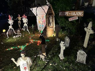 Stranger Things, 10308 Barnard Drive, Chicago Ridge – Welcome to Hawkins, Indiana. Antonio Medina wants to share his joy of the sci-fi drama, included a hovering mannequin depicting Sadie Sink's Max Mayfield character from "Stranger Things."