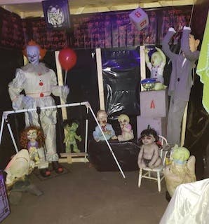 NEW! 6042 El Morro, Oak Forest — Mike Penn has created Freddy and Jason scenes from IT, and other horror movies, with the help of his daughter, Lily, and her friend Nolan. All the props are handmade, adding to the spookiness of the whole block.