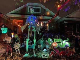 Skelleyton Manor, 1446 Van Buren Ave, Des Plaines – Kevin Kelley’s City of Destiny haunt features looming skeletons, mummies and werewolves, and puts the “dead” in “Dead Plaines,” as the youngsters like to call it. “Halloween is our family's favorite holiday,” says Kevin. “We really enjoy setting up our decorations for everyone to see and enjoy.” The display goes on around 6 p.m. and shuts off around midnight.