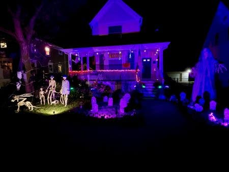 NIGHTMARE ON NATOMA, 9716 S. NATOMA AVE., OAK LAWN — We love Lou and Melissa Rizzo’s shrieky, freaky yard. Like many yard haunts, it keeps getting bigger every year. Lou’s friends and neighbors have been telling him to get on the scary yard tour for years, and we’re glad they did. People can walk down a path and look through the windows at the decorations inside the Rizzos’ house. “We did this last year and we had a blast meeting all the people that came by. We added a few more things and changed a few also. We have a graveyard scene with many skeletons and animated props to add to the fun. It is kid friendly because that’s who we do it for — the kids.” The yard is lit from 4 to 10 p.m. weekdays, through 11 p.m. weekends.