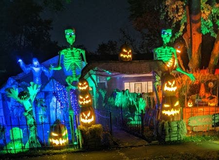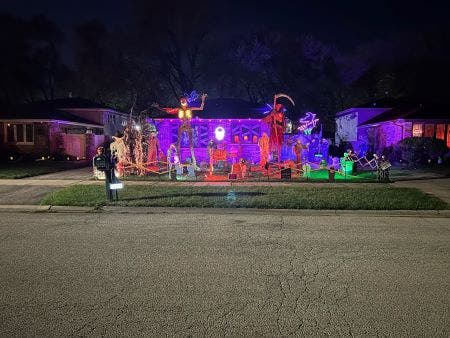 Pavel's Cemetery, 7416 S. Octavia Ave., Bridgeview – This is a family-friendly yard display with a graveyard, light, and music show featuring a pumpkin king. The props are a combination of homemade and store-bought. Safe for young kids because there aren’t too many jump-scares, but there may be a few surprises.