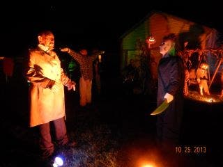 NEW! GRAVEYARD ON KILPATRICK, 14441 Kilpatrick Ave., Midlothian — Instead of playing tricks, kids come from miles around just to see Judy Scott's giant front yard mausoleum. "I have been decorating my house since around 1988, and I have expanded my decorations to what they are today. It started with my love for Halloween and my son wanting to scare the children. My husband helps with the large displays that are all handmade, like the mausoleum." On Halloween night there are smoke machines, spooky music and a live actor prowling about to scare the kiddies. Lights are on from dusk to 10:30 p.m.