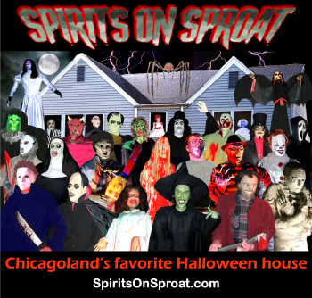SPIRITS ON SPROAT, 9028 S. SPROAT AVE., OAK LAWN — Love classic monsters from the movies, TV, literature, urban legend and pop culture? Come visit Spirits on Sproat, now in its fabulous 20th year. One of Chicagoland’s most popular Halloween season destinations, Spirits on Sproat in Oak Lawn began as a barebones outdoor exhibit with a handful of props. But over the years it continued to expand until it finally outgrew its front yard territory and enlarged to also include the back yard. What sets our free home haunt apart from others is that, from the start, it was designed to be an outdoor museum showcasing over 120 full-size figures, most of which are home-made replicas of classic horror characters—from Frankenstein and Freddy Kruger to Medusa, Norman Bates, Slenderman, Leatherface, the Headless Horseman, and Art the Clown. Fresh figures for 2024 include Dead Ned the Dullahan knight; Moe, Curly, and Larry the clown trio; Heartburn Harry; Patchy the plundering pirate; the angry apple tree from the Wizard of Oz; and several more. Spirits on Sproat—which has been featured multiple times on Svengoolie’s television program and was named a Hall of Fame Haunt by The Horror Tourers. Spirits on Sproat is not only Svengoolie’s favorite yard haunt, it’s 7-year-old Gavin DeGrechie’s favorite stop on the scary yard tour. The display will operate Sept. 27-29, Oct. 4-6, Oct. 11-13, and Oct. 18-31 (weather permitting). Hours are 7 p.m. to 11 p.m. Fridays and Saturdays and on Oct. 31; and from 7 p.m. to 10 p.m. on Sundays and Oct. 21-24 and Oct. 28-30. All ages are welcome.