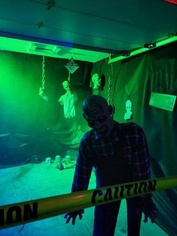 NEW! Reapers Revenge On Ridgeland, 16422 Ridgeland Ave., Tinley Park – This is the Deenens' eighth year of decorating in Tinley, and four years before that in Alsip. They’ve added six new props. The biggest hit is their zombie containment machine. Push the button and hope he doesn’t escape.