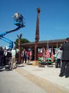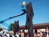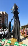 Already, the monument by sculptor Erik Blome has taken on an aura of its own, as if connecting with the souls lost on that day: a tear naturally formed in the eye of the police officer on one of the bronze spires.