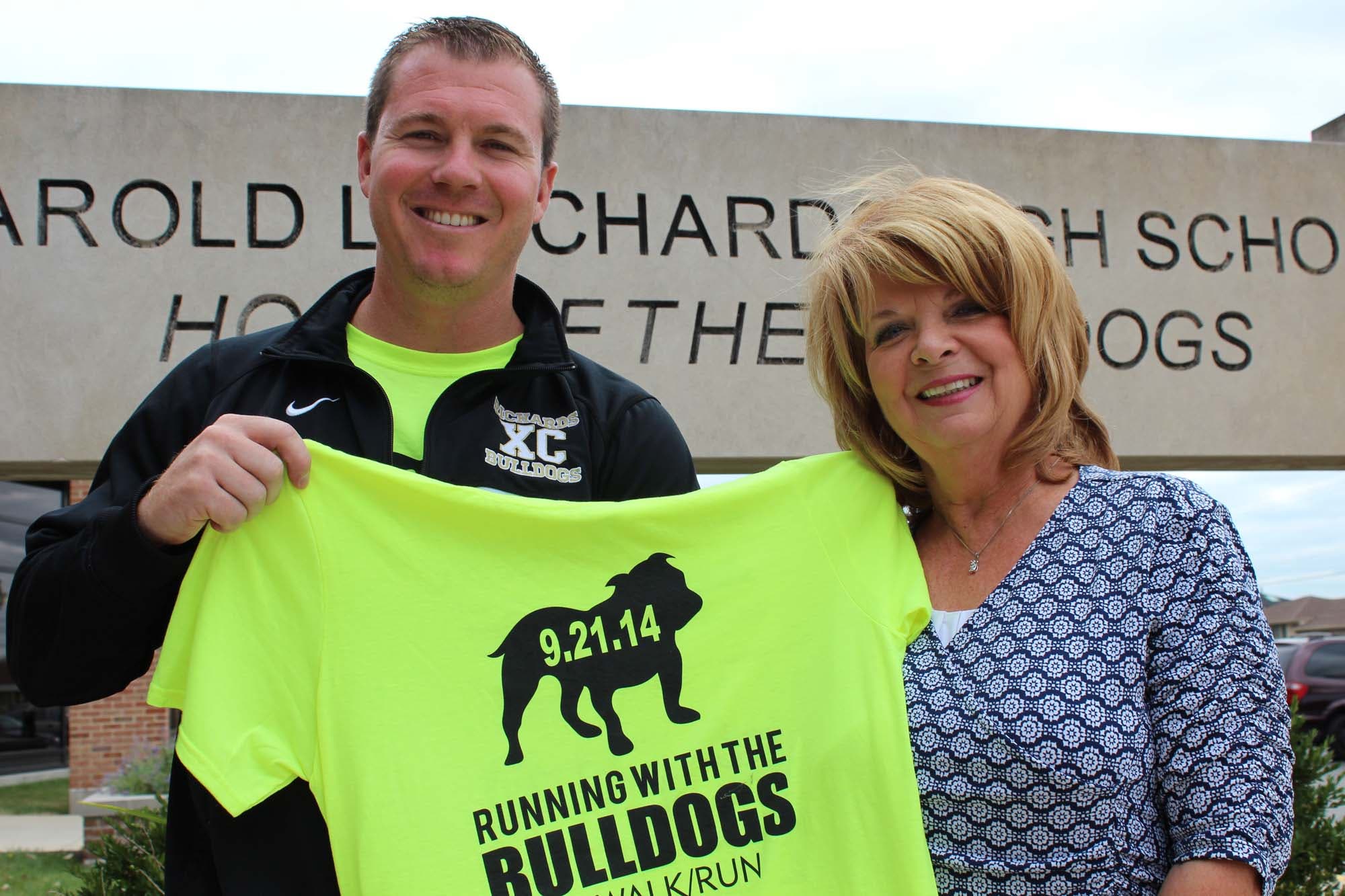Kisel appears with Richards teacher and 5K organizer Bob Peck. They’re holding the shirt from last year’s event.