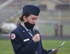 The JROTC colorguard brought students to attention to start the ceremony. As trumpet players from the Shepard marching band performed ‘Taps,’ JROTC students lowered the American flag to half-staff while classmates saluted.