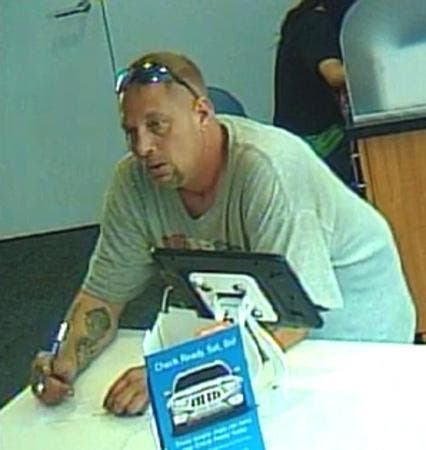 Images from the FBI-website BanditTrackerChicago show Damm with sunglasses perched on his head and hanging over the counter of the teller window at the PNC Bank branch, 4400 N. Broadway, in Chicago’s Uptown neighborhood. The suspect’s face, as well as his arm and neck tattoos, can be seen in the surveillance video.