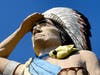 Painting and restoration gets under way on Southwest Highway's giant Native American tribal chief statue.