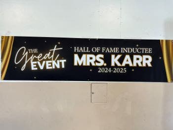It wasn’t until a covering was removed from a banner on the wall announcing Debbie as the school’s 2024-2025 hall-of-fame inductee, that she, as well as students, had any idea what the assembly was about.