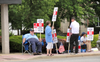 A family begins arriving at Blake-Lamb for an afternoon wake. Out of respect, the strikers congregate under the tent canopy; they agreed among themselves not to picket in front of the home during visitations and funerals arranged prior to Monday’s strike vote.