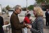 *Garrett Eakin (left) greets Jill Haas, one of the first purchasers of a unit at The Residences at Maple Place. (Inside Edge PR photo)