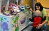 Meghan Abraham (right) is joined by her mother, Mary Ann Casper proudly display the many items collected in honor of Jacob's fifth birthday.