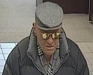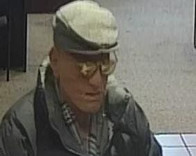 The teller described the robber as a white male, 5-feet-9-inches tall, in his late 50s to early 60s, with a heavy build. He wore tan or gray gloves. The alleged robber kept his right hand in his pocket during the robbery. The demand left behind was written on a piece of paper torn from a spiral notebook, according to the criminal complaint.