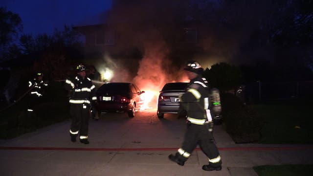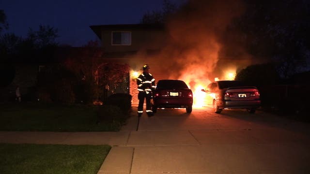 ORLAND PARK, IL -- Two cars burst into flames early Thursday morning while parked in the driveway of a home in Orland Park. The blaze was reported around 5:05 a.m. in the 15400 block of Edgewood. Firefighters from the Orland Fire Protection District broke down the front door to search for occupants of the house. It was later determined that the homeowners were not home at the time of the fire. The fire is under investigation.