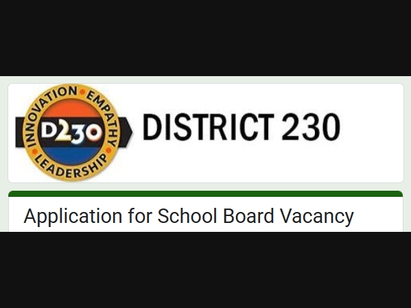Persons interested in serving to fill the vacancy may apply by Monday, April 6, at www.d230.org/school-board/school-board-vacancy-application. Whoever is selected will serve until the next election in April 2027.