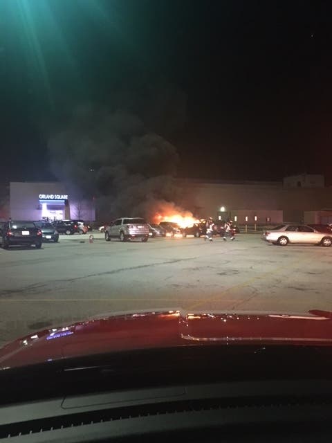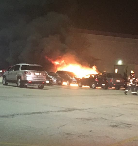 Around 8:30 p.m. Wednesday, the Orland Fire Protection District received a call of vehicles on fire in the lower-level Sears parking lot at Orland Square. Firefighters arrived to find one of the cars fully consumed by flames. Three other vehicles had also caught on fire. The fire was struck in about ten minutes and was confined to four vehicles. There were no injuries.
