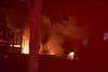 ~ Orland Fire Protection District firefighters battle a blaze on a pool deck and pool house in Orland Park on Aug. 3. | Courtesy of OFPD