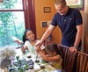 MAIN: Tim Prajka helps Bella, 4 and Kara, 12, decorate cupcakes.