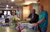 SMALL GROUP: Dr. Xu, Dr. Bhoopal and Dave Prajka prepare the serving area for the residents