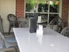 6. Both shady and sunny options. Mostly shady, from a garden-length awning. But the breeze blows through, and in the event of a sudden rainstorm, as during our last visit, you and your beer will stay dry. Once the rains picked up a few drops trickled through but overall it does the job.