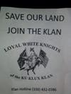 Spears responded to a query about Klan literature left in the driveway of a home near the intersection of Cedar Road and Joliet Highway. He said his group distributed the leaflet during one of its "night rides when we go out dropping off fliers."