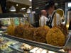 Customers can dine in on crepes, or pick from a hot foods area that includes macaroni and cheese, fried chicken, pasta, mashed potatoes and grilled vegetables. There is also a soup and salad bar. Shoppers can pull up a seat at Nob’s wine bar, and choose from a selection of beer and hard cider on tap while enjoying a large-screen TV. Skip the main cashier lines and pay for prepared foods and drinks at the individual stations.