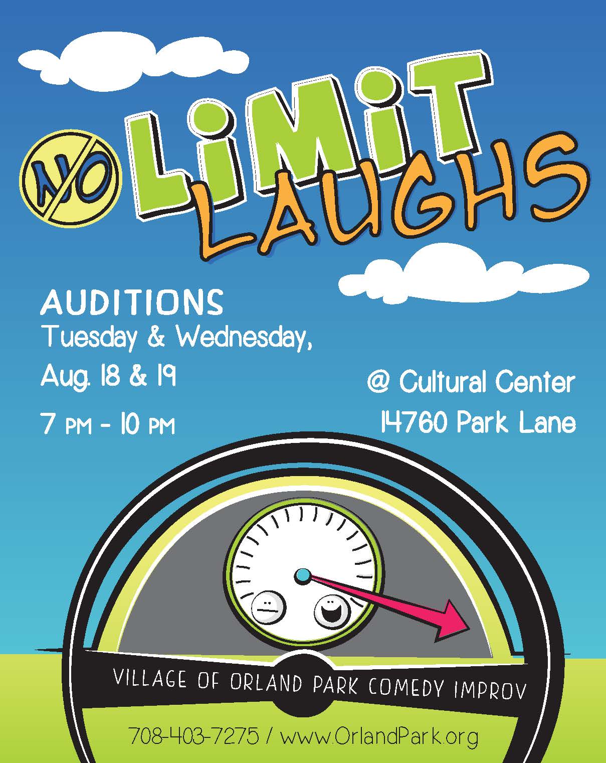 The Village of Orland Park Comedy Improv Team is holding auditions for its 2015-16 season on Tuesday, August 18 and Wednesday, August 19 from 7 p.m. to 10 p.m. in room 101 of the Cultural Center. Quick witted area adults, age 18 and older, are invited to audition for the team that performs once a month from September through August.