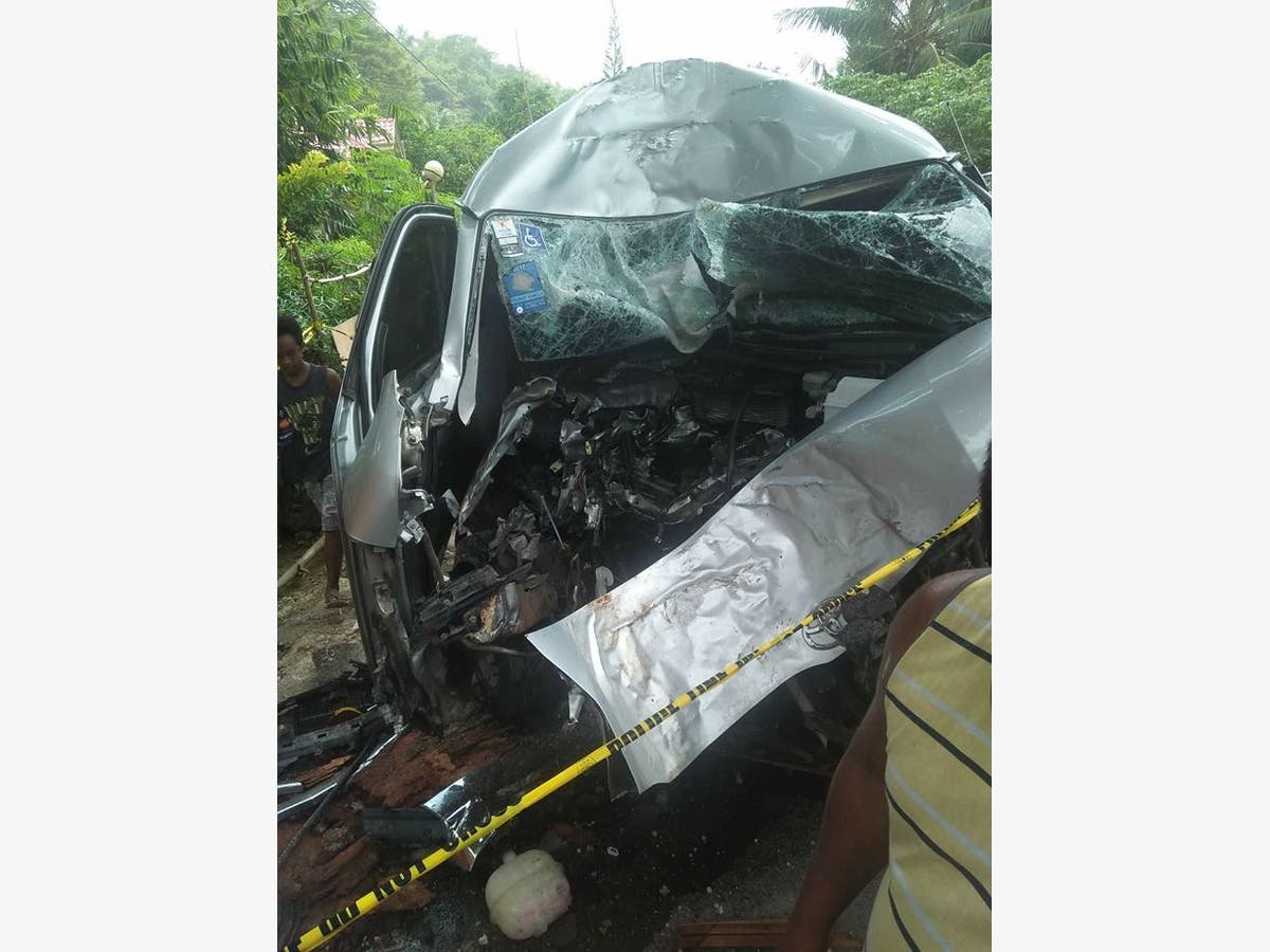 Photo: Mangled tour van in which seven members of a medical missions trip were killed on Saturday | Alegria Police Station, Cebu PPO
