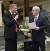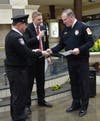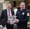 With early morning mall walkers passing by, shopping center officials hosted a thank you breakfast and presentation for village officials and police personnel in the mall’s center court on Friday, January 13.