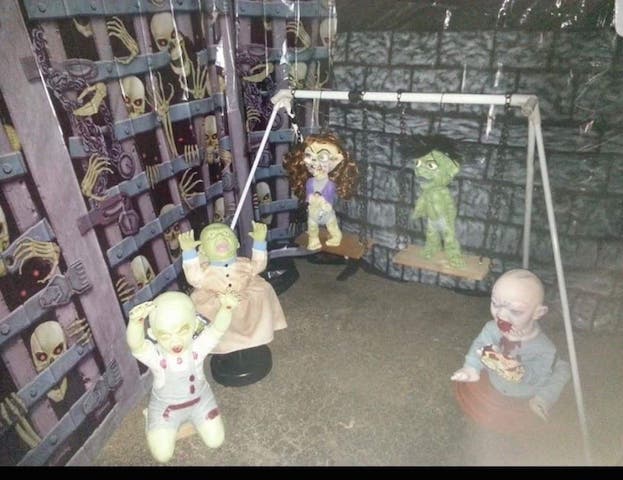 NEW IN 2018! DEMON’S GRAVEYARD OF DOOM/WITCHES INSANE ASYLUM TO HELL, 1127 WALTER ST., LEMONT -- This is double-themed yard includes a garage walk-through if you care to take a stroll into Hades. Say hi to Pin Head, Freddie Krueger and Leather Face. Yard haunt will be up Oct, 12. Lawn is lit 6:30 to 10 p.m.