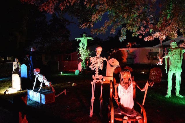 101ST STREET CEMETERY, 5133 W. 101ST ST, OAK LAWN -- Inspired by Pinterest and Dollar Tree, this yard of ghouls has doubled in size from last year, including a garbage can full of guts.