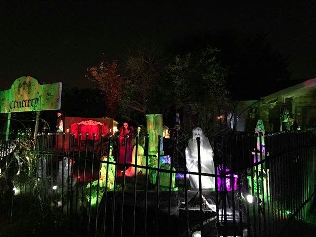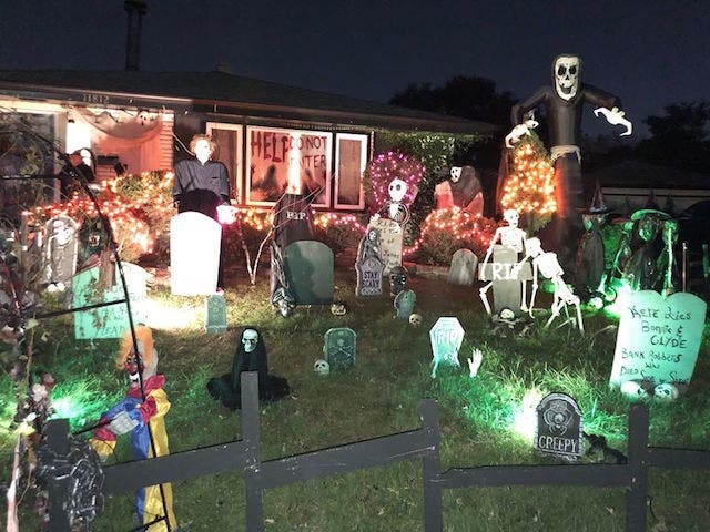 NEW IN 2018! GRAVEYARD ON KILPATRICK, 14441 KILPATRICK AVE., MIDLOTHIAN -- Kids come from all over just to see Michael Meyers rise from the dead in this haunted graveyard. On Halloween, there are smoke machines and live actors to chase you up and down the street. Live actors are a hit or miss during operation hours, except for Halloween. “I have been decorating my yard since around 1988 and I have expanded my decorations to what it is now. It started with my love for Halloween and my son wanting to scare the children. Now my daughter and granddaughter and myself doing all the scaring,” says Judy Scott. The haunt will be finished by OCT. 11. Hours are 6 to 10:30 p.m. through Halloween. Just look for the Hearse in the front yard. (We wish Judy was our grandma.)