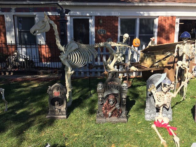 SPOOKY GRAVEYARD, 5232 S. MERRIMAC AVE., CHICAGO -- Don't let the house eat you. Charming homemade decorations. Kid-friendly.