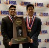 Sandburg High School Debate Team brought home the First Place Public Forum Debate trophy from the IHSA State Debate Championships at University of Illinois, Springfield. The tournament winning team of seniors Ayyan Chaudhry and James Hughes defeated Fremd High School in the final round.