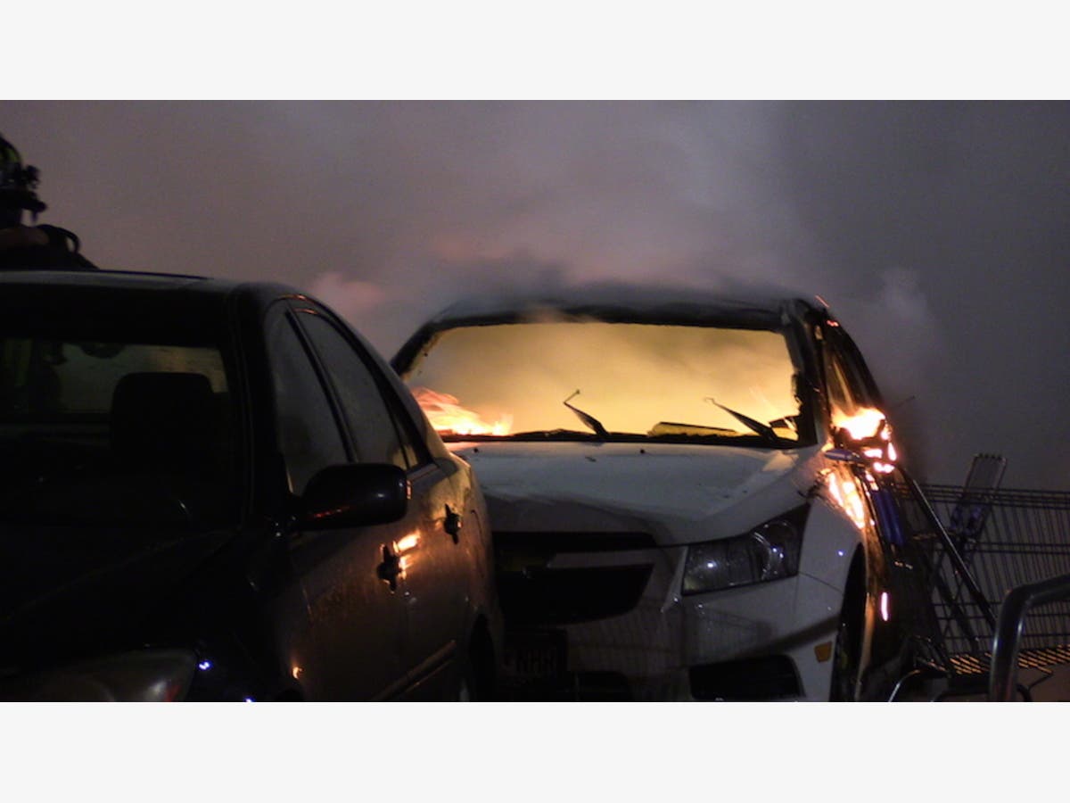 Two Cars Burn In Walmart Superstore Parking Lot