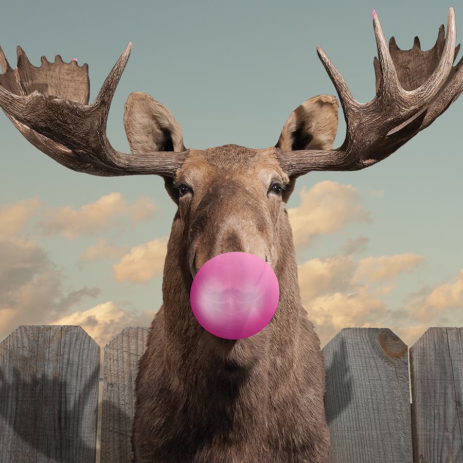 The piece, a photo-illustration of a moose blowing bubblegum, hangs on the vibrant blue wall at a size of 48 feet by 43 feet, a pretty intimidating size for the least intimidating picture. The giant moose is greeted by hundreds of passerby’s whether they are walking by or taking the EL train that runs right past it. He said he is extremely excited to have his artwork add a little quirkiness to the city of Chicago.