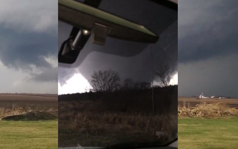 A North Carolina man passing through Illinois on a business trip was directly in the path of the EF-4 tornado that struck northern Illinois on Thursday April 9. The motorist, who was on Interstate 39, was just a few hundred feet from the tornado as it passed by. He recorded the twister on his iPhone while sitting in his truck.