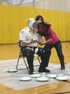 The Oswego Fire Department showed up Dec. 18 as promised and put on some relay races for the students who were eagerly awaiting the pieing.