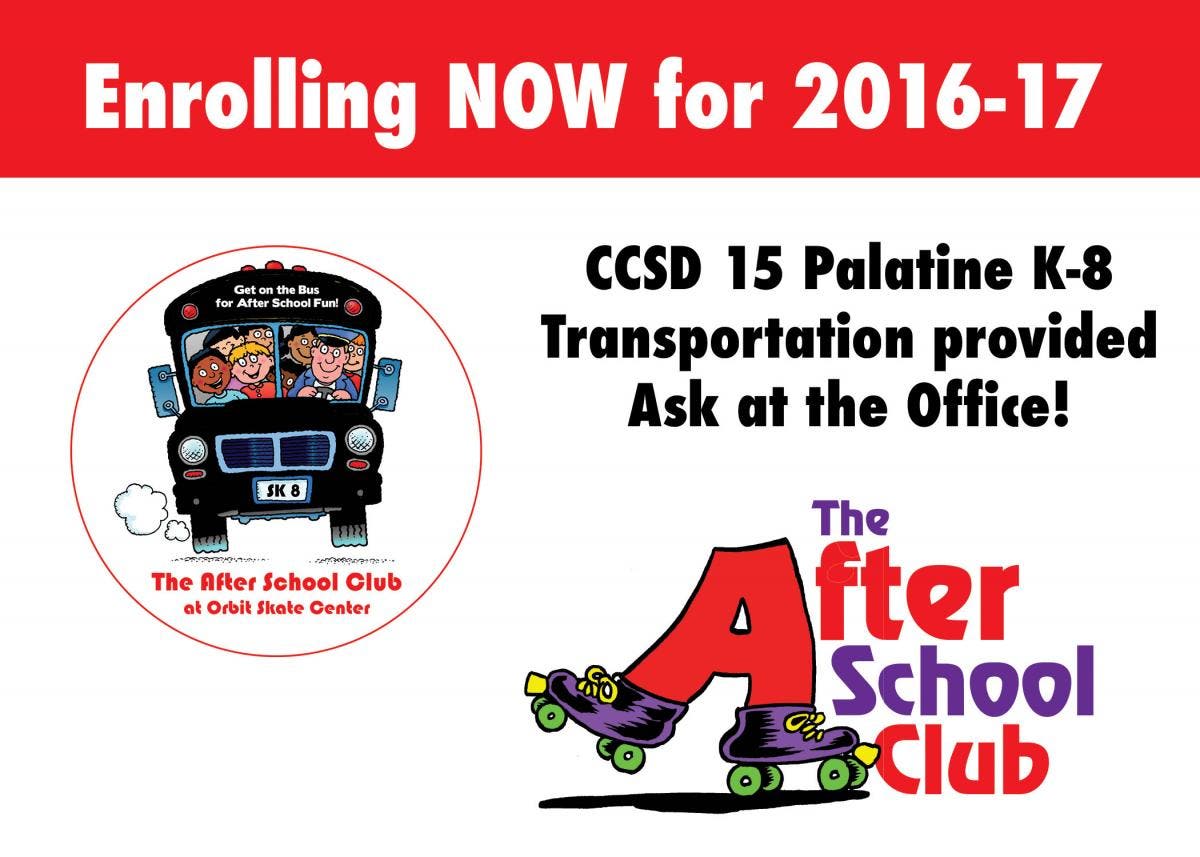 The After School Club is a not-for-profit community based service offered to children in Palatine District 15 families at Orbit Skate Center