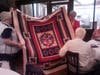 The quilts themselves - which take close to 20 hours and six people to make - are lap-sized [4.5 feet by 5.5 feet] and made by a quilt-topper (the piecer) and quilted by a longarmer.