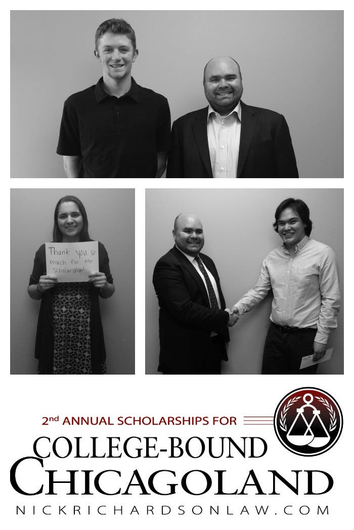 This month, the 2nd Annual Scholarships for College-Bound Chicagoland Powered by the Law Office of Nicholas W. Richardson, P.C., were awarded to four area high school students. Thank to you everyone who submitted an essay for this year’s scholarships. Congrats to the winners:
