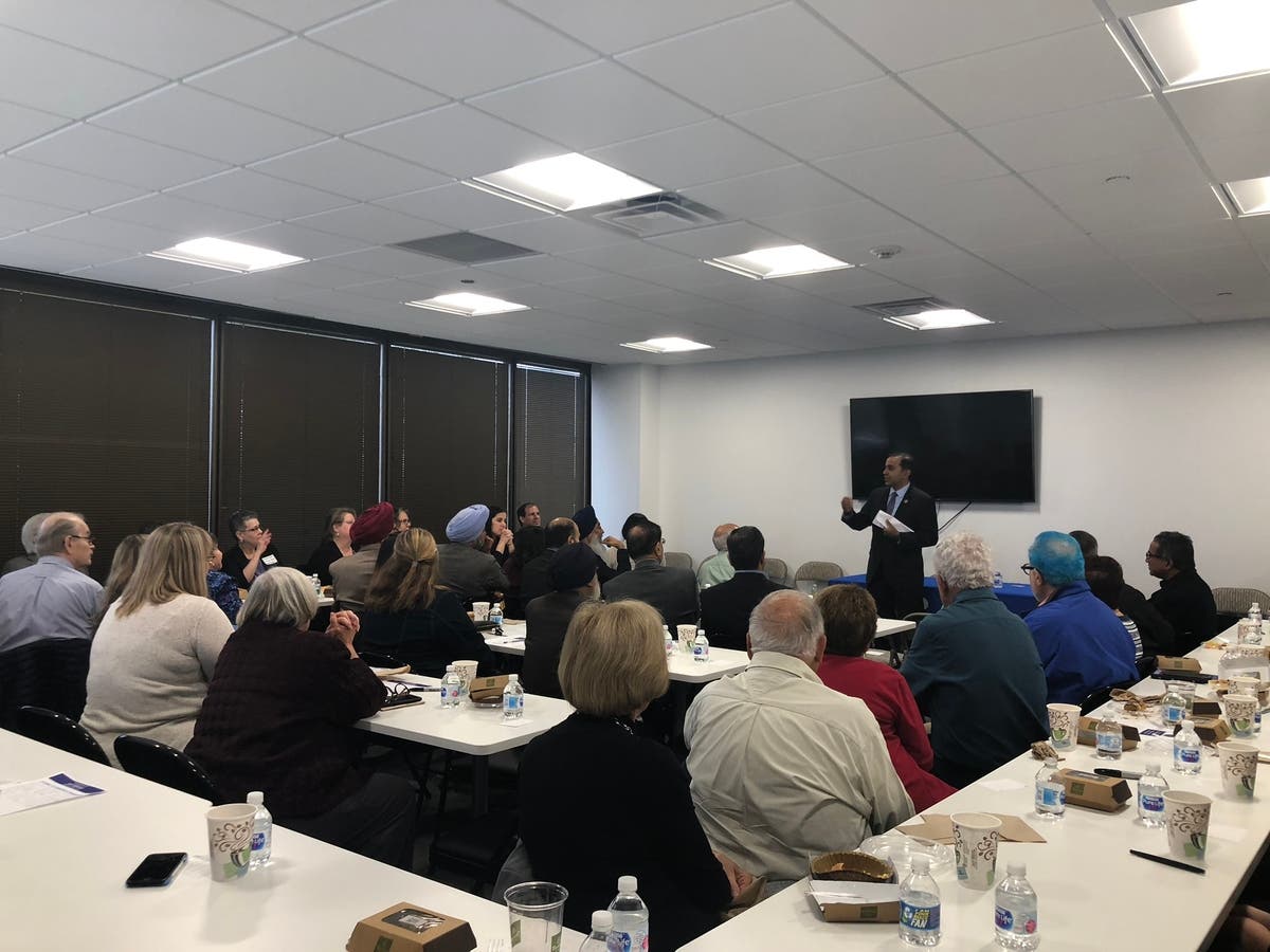 SCHAUMBURG, IL – On Wednesday, Congressman Krishnamoorthi held a unity breakfast in Schaumburg to bring together religious and civic leaders to strengthen bonds and dialogue in the wake of the attack on the Tree of Life Synagogue in Pittsburgh and other disturbing attacks across the nation. In addition to religious leaders from the Jewish, Hindu, Muslim, Christian, Jain, and Sikh communities, participants at the breakfast included elected officials, business leaders, representatives from law enforcement, and members of the African-American, Latino, Asian-American, and LGBTQ communities.