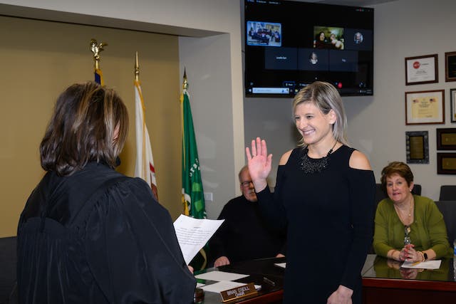 Jaclyn O’Day, of Palos Park, was sworn in Jan. 24, to fill a vacancy on the MVCC board | Photo by Glenn Carpenter