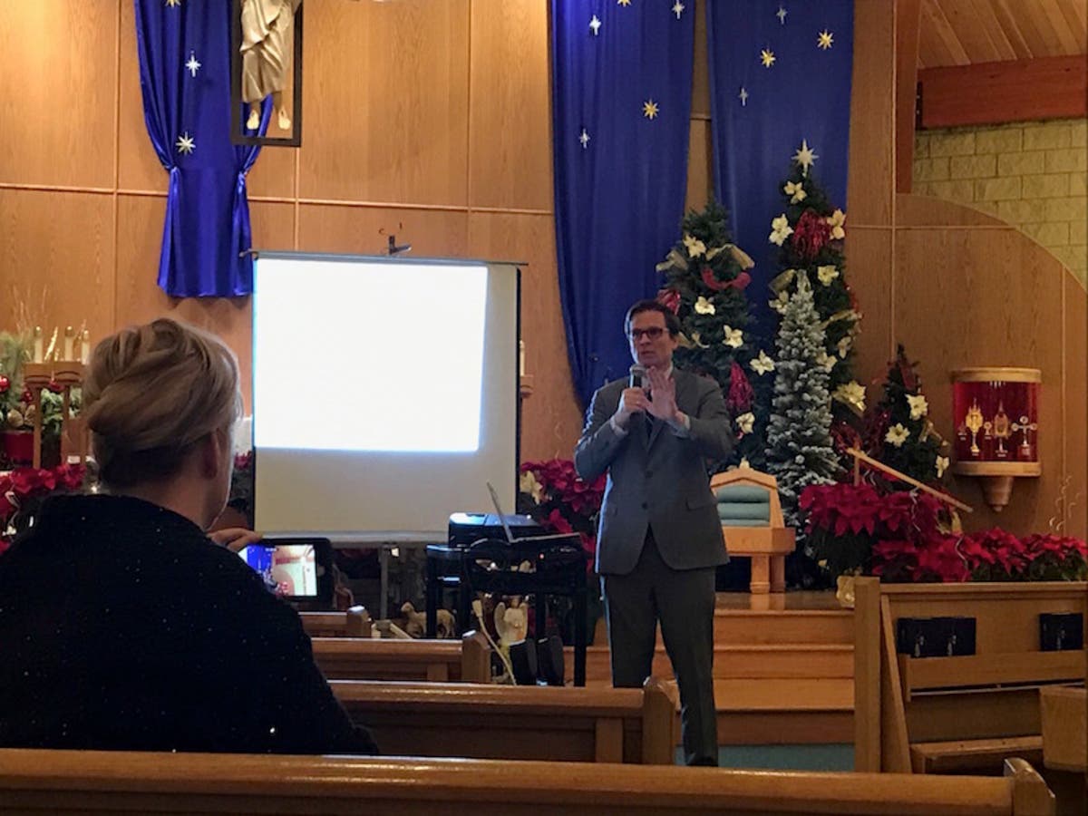 Chicago Catholics Schools Chief Operating Officer Tom McGrath addresses parents at Incarnation Church. | Photo by Patch Editor Lorraine Swanson