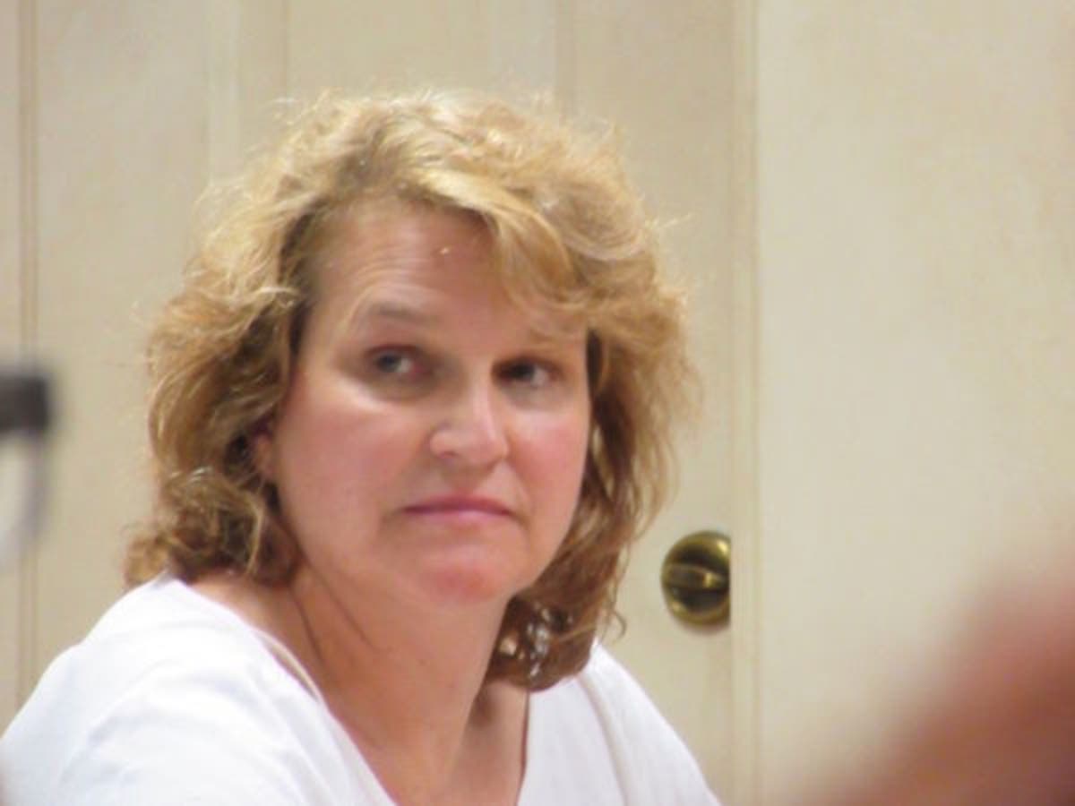 Tr. Sharon Brannigan listens to angry Arab American residents at Palos Township board meeting on July 10, 2017.