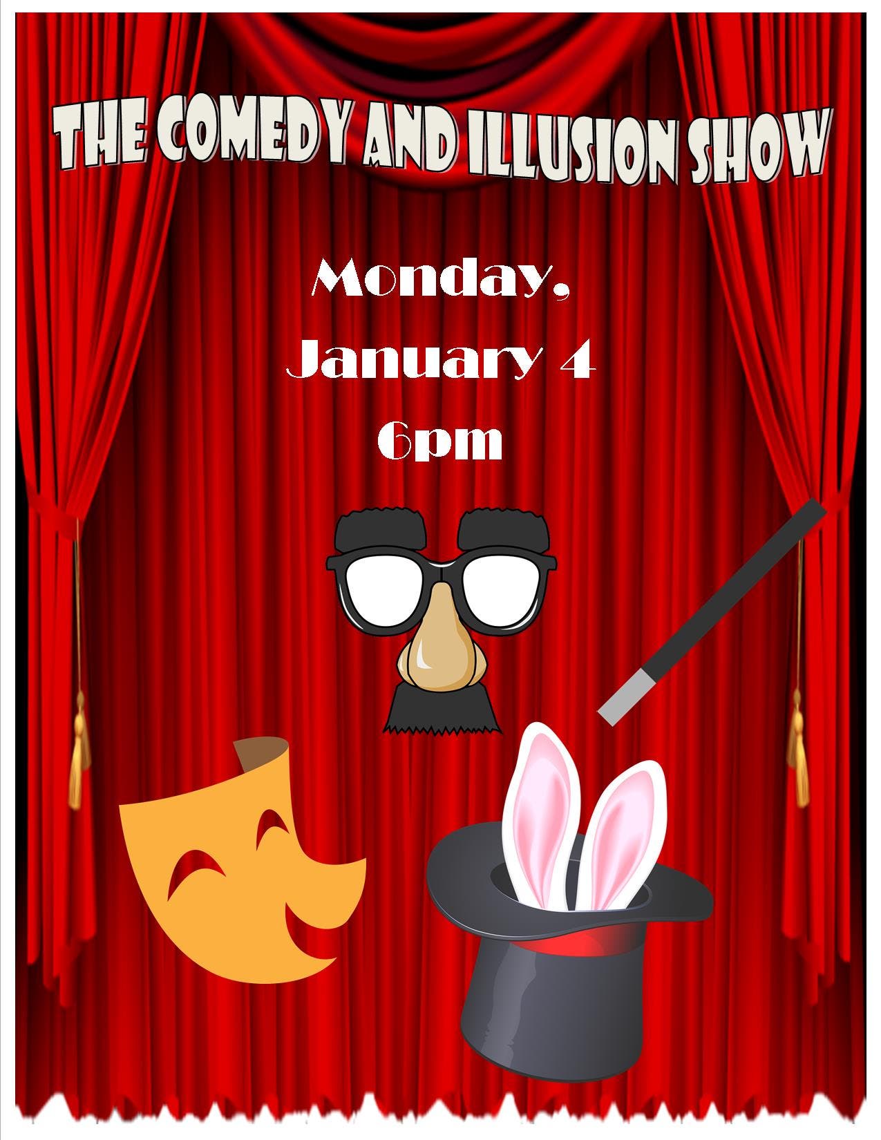 The Great Scott is coming to the Library for a magic show unlike any you’ve seen. Scott will suspend a volunteer in midair, pull coins from everyone’s noses, and turn the audience into monkeys. You will literally shake with laughter... and don’t be surprised when the adults have as much fun as the children! Registration is limited to 90. All ages welcome. Monday, January 4 at 6pm.