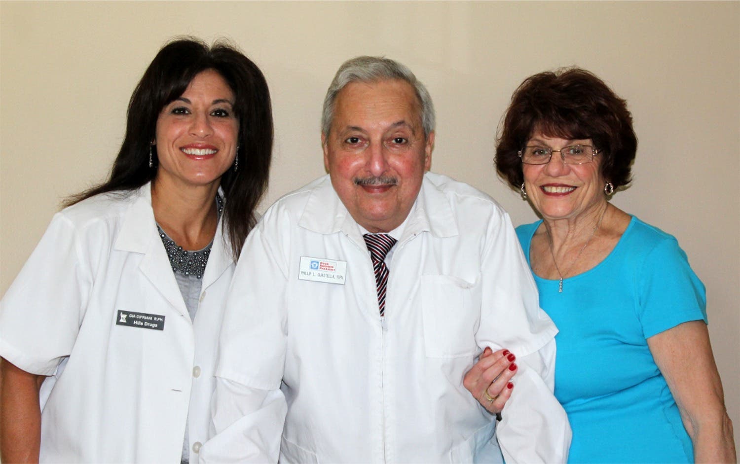 “There’s no automation or long wait times for your prescription when you come to our pharmacies. Here, you get prompt, attentive service from real people who know the customers’ names, and orders get filled fast as soon as you come in. We don’t make you come back in two hours to pick up your medications,” says Guastella, who has been married 53 years to wife Diana and has four children—Frank, Ross, Carla and Gia—and 10 grandchildren.