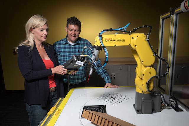 Students can get career-ready program in MVCC's new automation in engineering technology certificate that includes training on FANUC robot.
